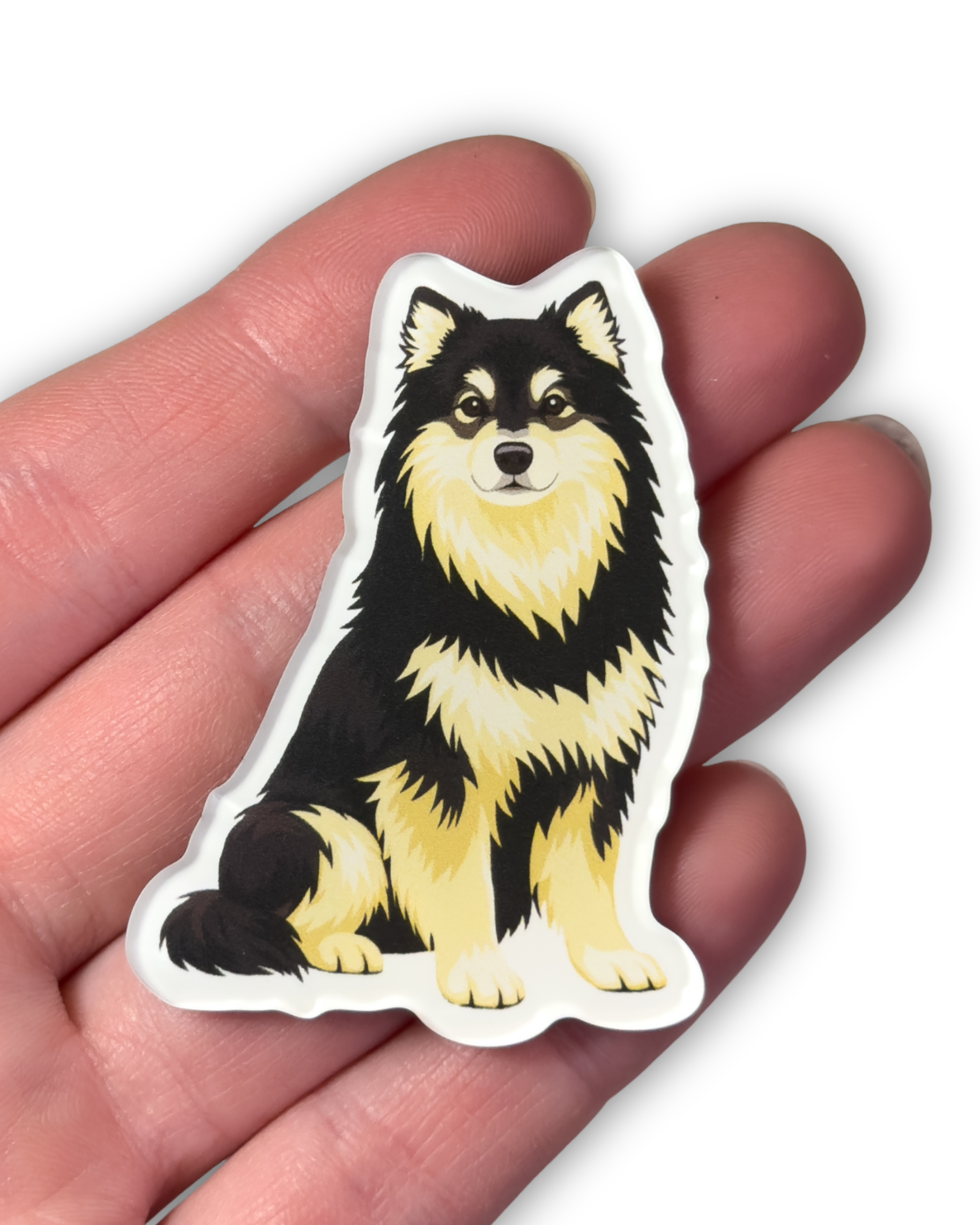 Suomenlapinkoira-magneetti (musta vaalein merkein)